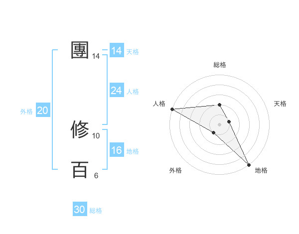 團 修百さんの総格は30画の2点!
