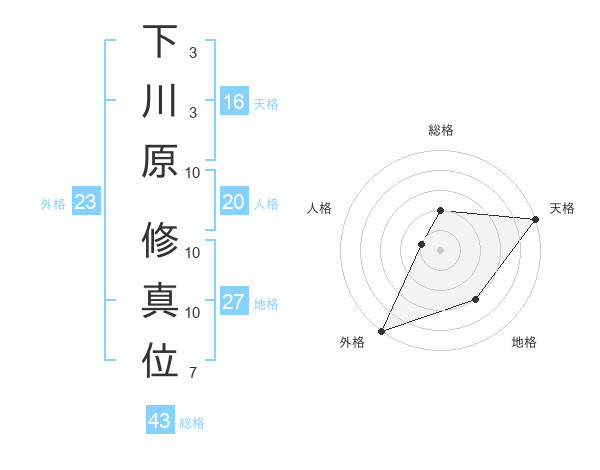 下川原 修真位さんを姓名の画数から五運を鑑定