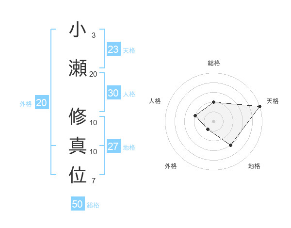 小瀬 修真位さんの天格は23画の5点!