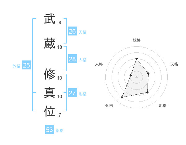 武蔵 修真位さんの総格は53画の3点!