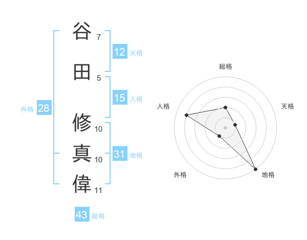 谷田 修真偉さんを姓名の画数から五運を鑑定
