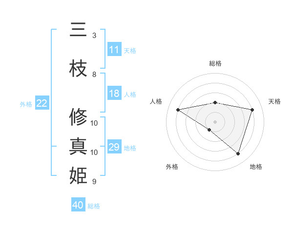 三枝 修真姫さんを姓名の画数から五運を鑑定