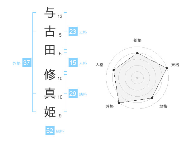 与古田 修真姫さんの外格は37画の5点!