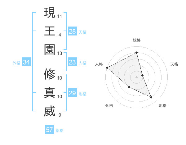 現王園 修真威さんを姓名の画数から五運を鑑定