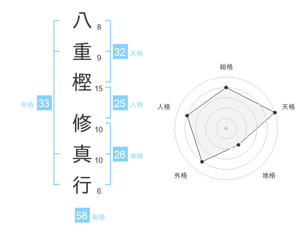 八重樫 修真行さんの総格は58画の4点!