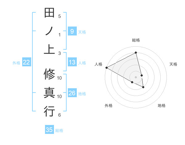 田ノ上 修真行さんを姓名の画数から五運を鑑定
