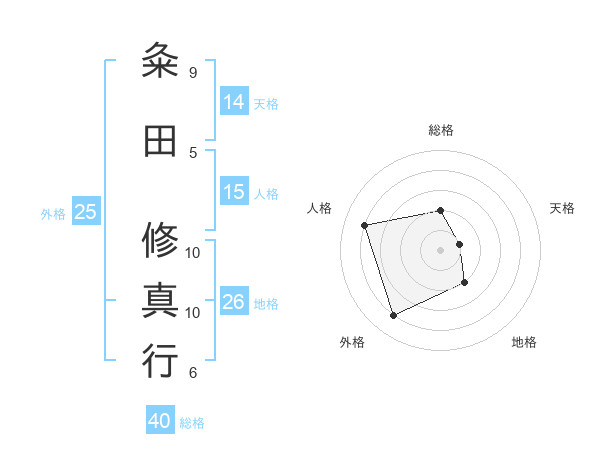 粂田 修真行さんを姓名の画数から五運を鑑定