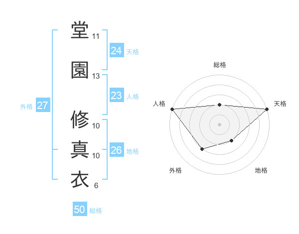 堂園 修真衣さんを姓名の画数から五運を鑑定