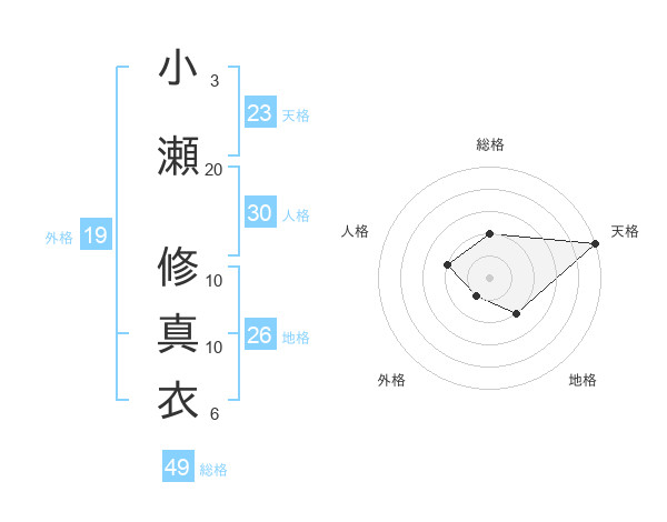 小瀬 修真衣さんの天格は23画の5点!