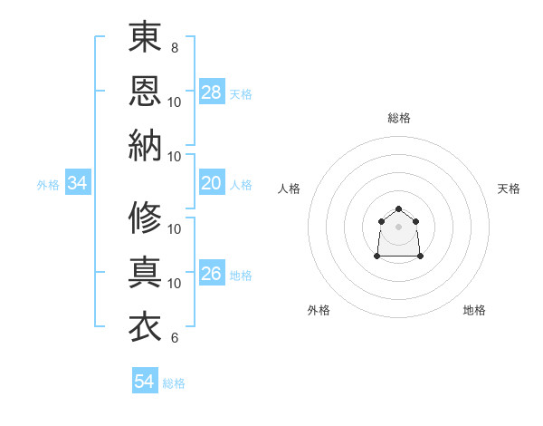 東恩納 修真衣さんを姓名の画数から五運を鑑定