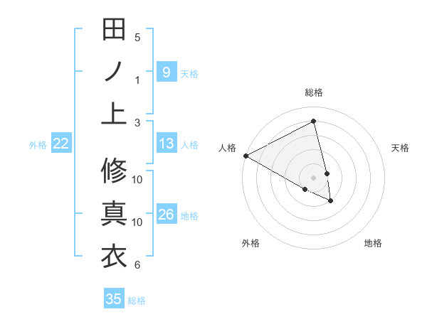 田ノ上 修真衣さんを姓名の画数から五運を鑑定