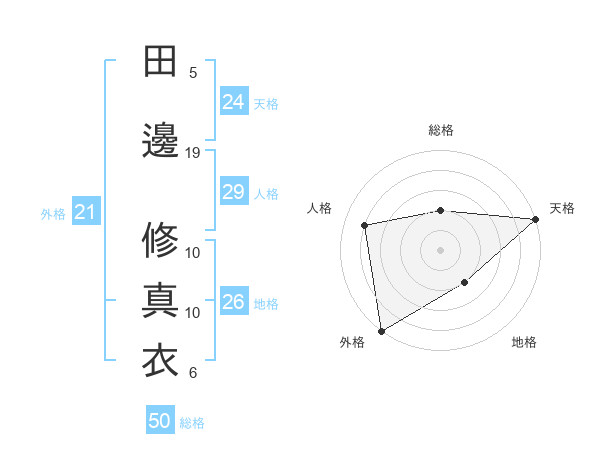 田邊 修真衣さんを姓名の画数から五運を鑑定