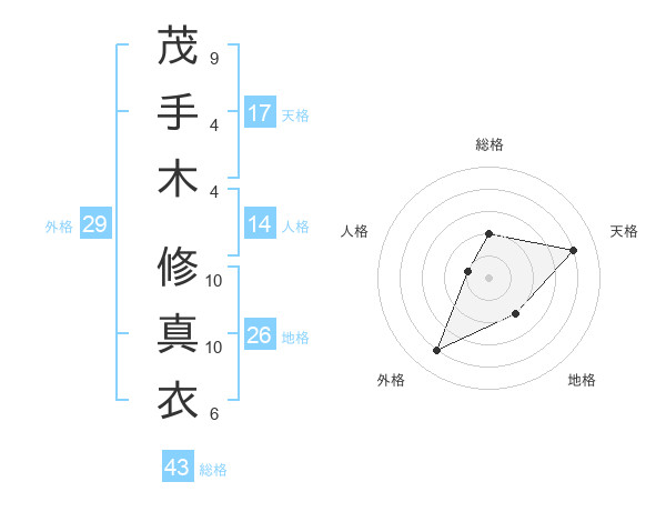 茂手木 修真衣さんの天格は17画の4点!