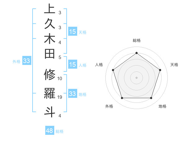 上久木田 修羅斗さんを姓名の画数から五運を鑑定