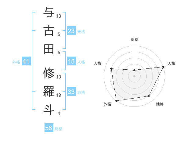 与古田 修羅斗さんを姓名の画数から五運を鑑定