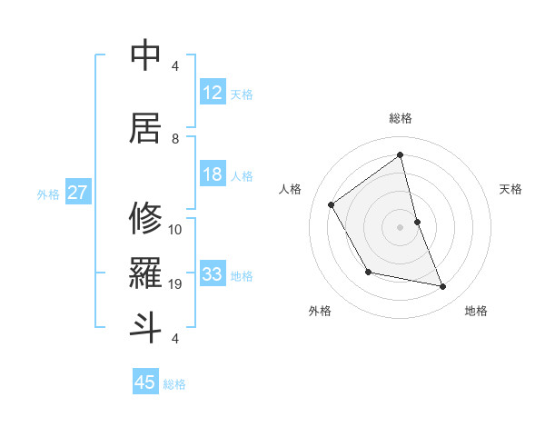 中居 修羅斗さんを姓名の画数から五運を鑑定