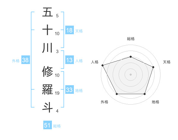 五十川 修羅斗さんの総格は51画の3点!