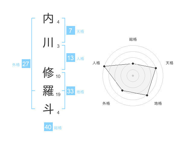 内川 修羅斗さんを姓名の画数から五運を鑑定