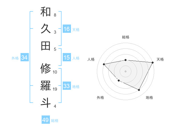 和久田 修羅斗さんを姓名の画数から五運を鑑定