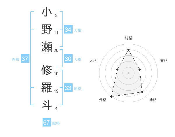 小野瀬 修羅斗さんを姓名の画数から五運を鑑定