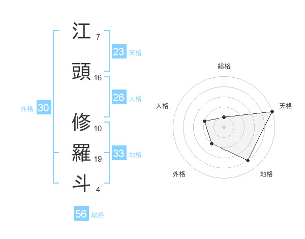 江頭 修羅斗さんを姓名の画数から五運を鑑定