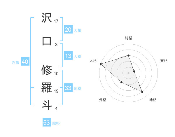 沢口 修羅斗さんの総格は53画の3点!