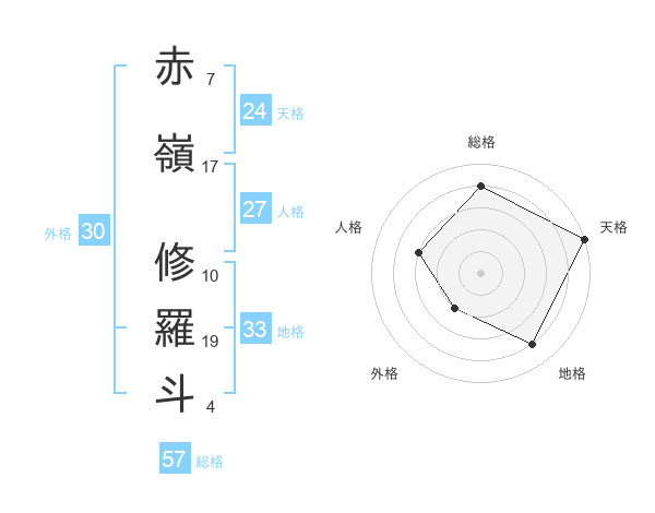 赤嶺 修羅斗さんを姓名の画数から五運を鑑定