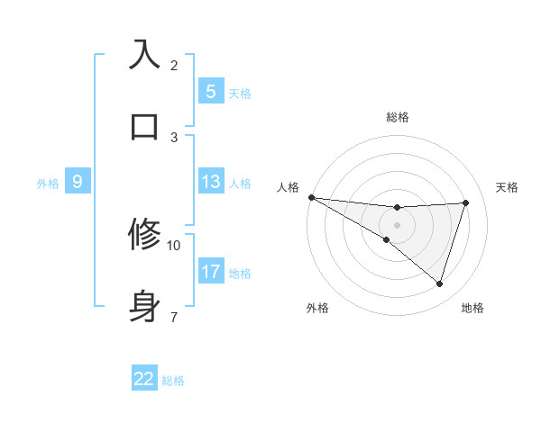 入口 修身さんの総格は22画の1点!