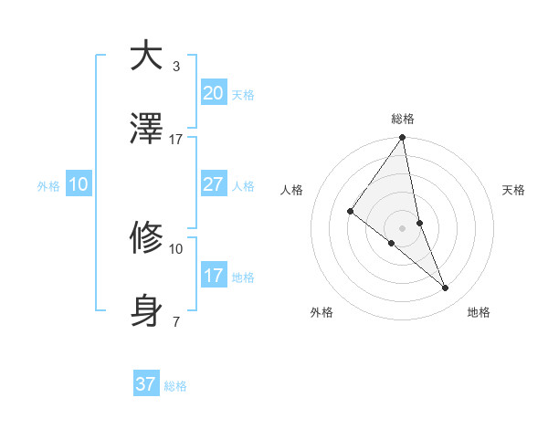 大澤 修身さんの総格は37画の5点!