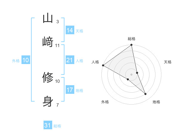 山﨑 修身さんの総格は31画の5点!
