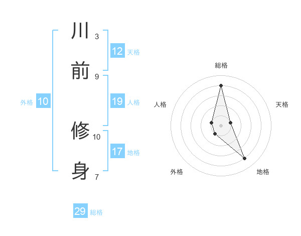 川前 修身さんの総格は29画の4点!