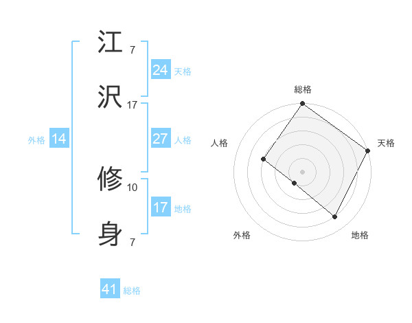 江沢 修身さんの総格は41画の5点!