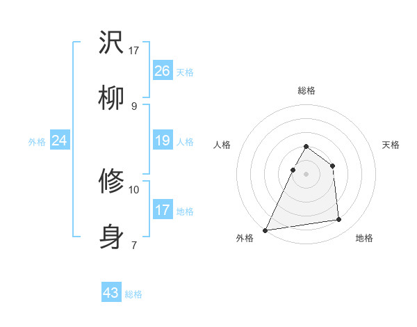 沢柳 修身さんの外格は24画の5点!
