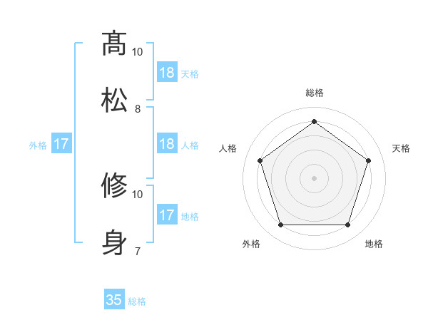 髙松 修身さんの天格は18画の4点!