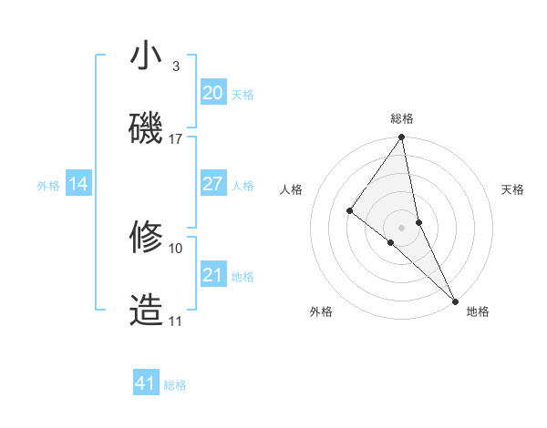 小磯 修造さんの天格は20画の1点!