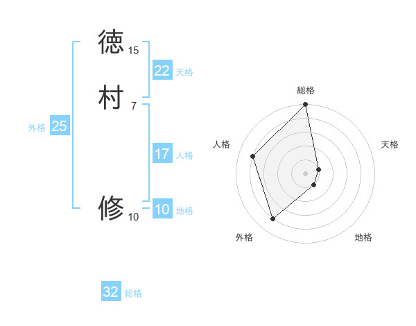 徳村 修さんの天格は22画の1点!