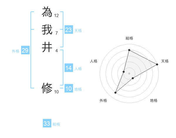 為我井 修さんの天格は23画の5点!