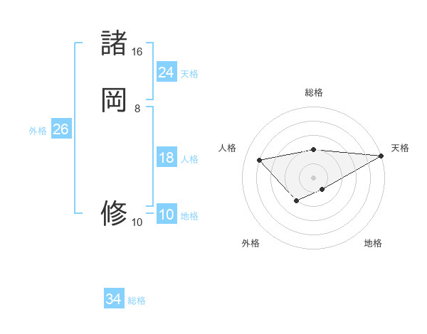 諸岡 修さんの天格は24画の5点!