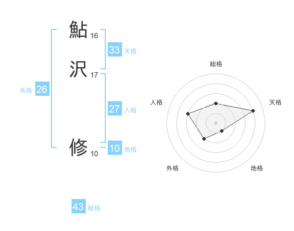 鮎沢 修さんの天格は33画の4点!
