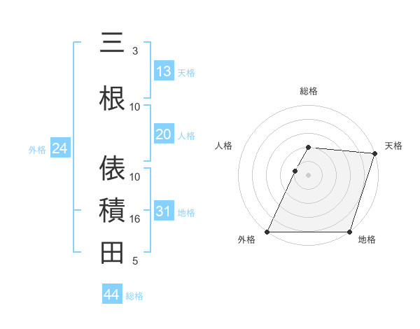 三根 俵積田さんの総格は44画の2点!