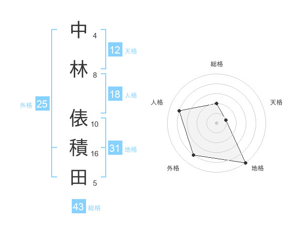 中林 俵積田さんを姓名の画数から五運を鑑定