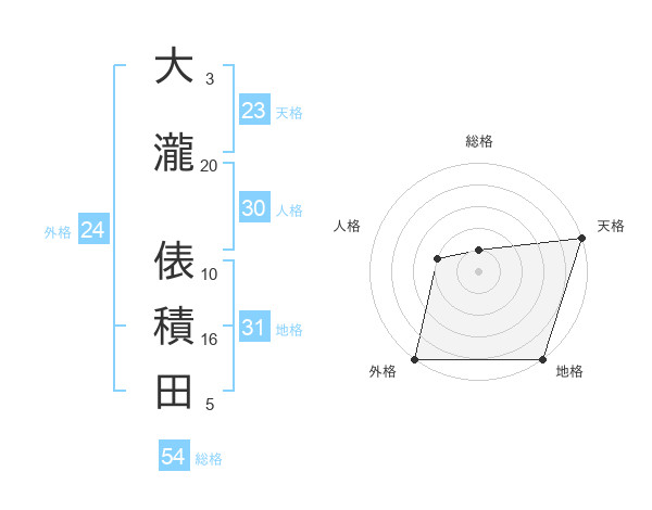 大瀧 俵積田さんを姓名の画数から五運を鑑定