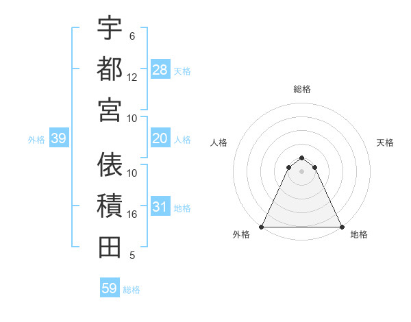 宇都宮 俵積田さんの外格は39画の5点!