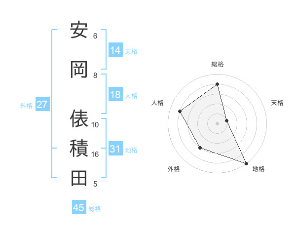 安岡 俵積田さんを姓名の画数から五運を鑑定