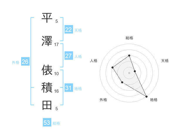 平澤 俵積田さんを姓名の画数から五運を鑑定