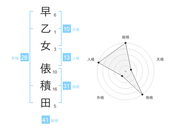 早乙女 俵積田さんの総格は41画の5点