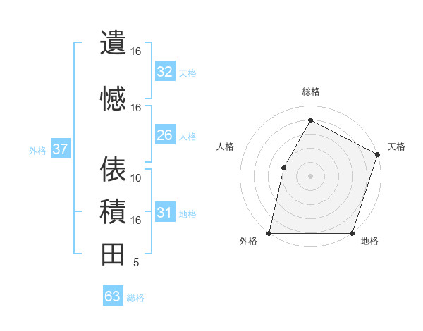 遺憾 俵積田さんの地格は31画の5点!