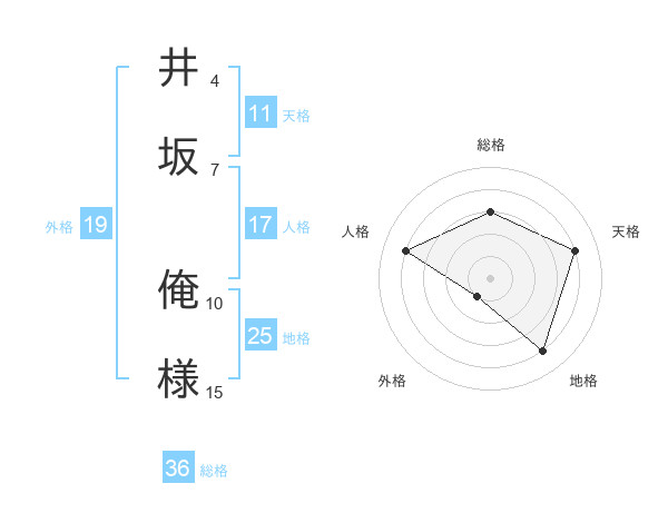 井坂 俺様さんを姓名の画数から五運を鑑定