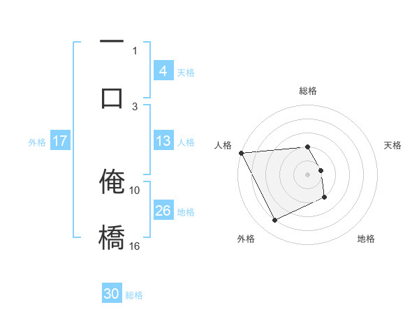 一口 俺橋さんの総格は30画の2点!