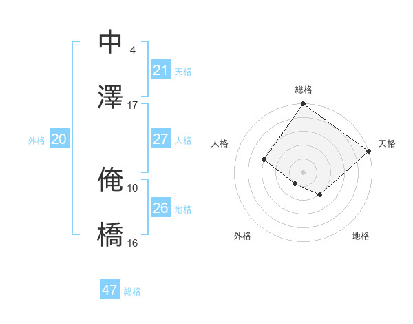 中澤 俺橋さんの総格は47画の5点!